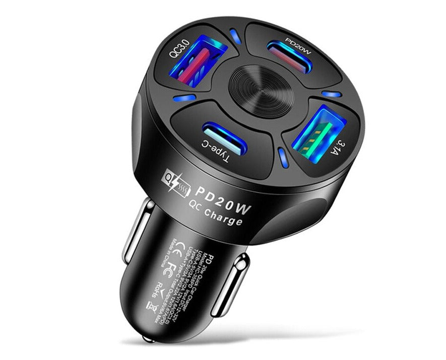 With the ability to charge up to four devices simultaneously, this car charger ensures that you and your passengers can power up your devices with ease while on the road. Whether you need to charge your phone, tablet, or even a power-hungry laptop, this charger has got you covered.